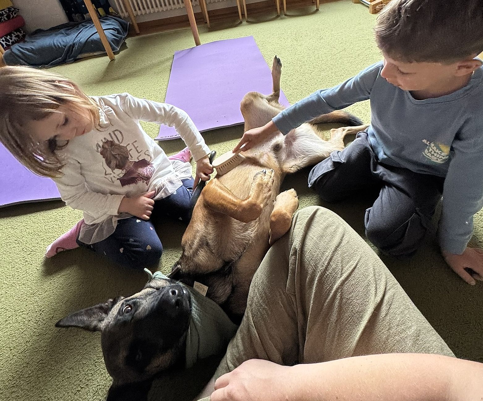 Besonders deutlich werden die positiven Effekte, wenn Smartie im Mittelpunkt des Geschehens steht: Viele Kinder sprechen freier und offener, was ihre sprachliche Entwicklung unterstützt. Auch bei Bewegungsabläufen profitieren sie – ob beim Streicheln, Bürsten oder gemeinsamen Spielen, immer werden Fein- und Grobmotorik sowie die Wahrnehmung geschult. Gleichzeitig lernen die Kinder, dass der Umgang mit einem Hund Regeln erfordert. Dadurch entwickeln sie Verantwortungsbewusstsein und Teamfähigkeit. Nicht zuletzt trägt Smartie zu mehr emotionaler Stabilität bei: Er spürt Gefühle sehr genau, reagiert unmittelbar darauf und schenkt den Kindern Ruhe und Geborgenheit. So kann er Ängste abbauen, Stress reduzieren und für wertvolle Momente der Entspannung sorgen.
