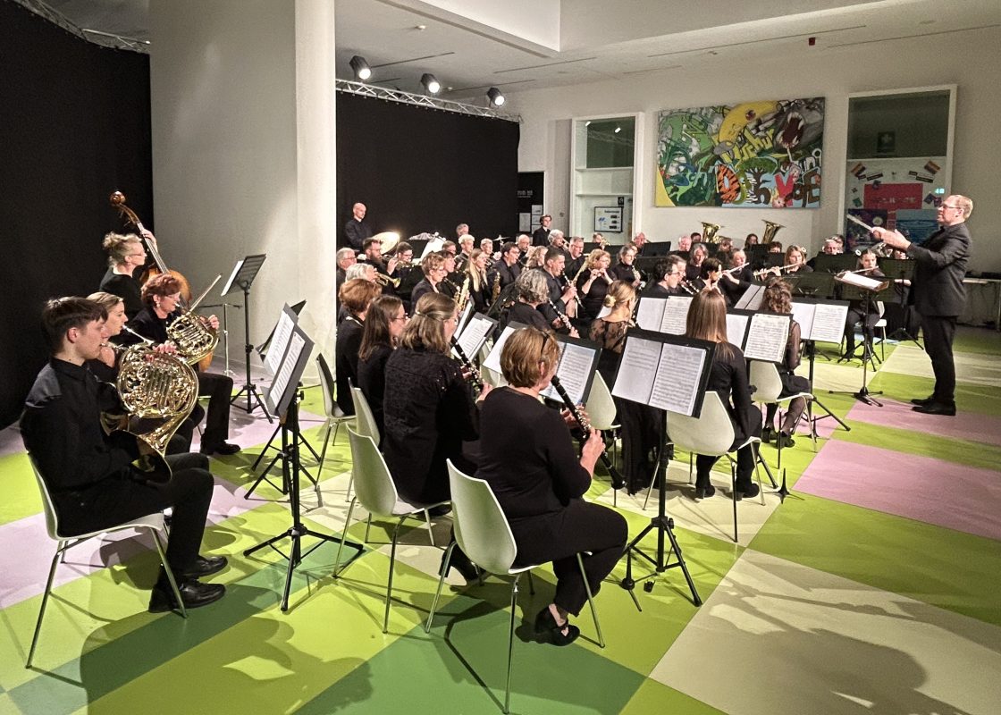 Michael Werner schwang nicht nur gekonnt seinen Taktstock, sondern führte auch als Conferencier mit Witz und Wissen durch eine musikalische Zeitreise, die durch den nuancierten Einsatz lauter und leiser Töne, taktgenaue Tempi und viel Spielfreude bestach, beim Auftakt mit den festlich-forschen Fanfarenklängen aus dem Feierlichen Chor der Hamburger Admiralitätsmusik (1730) von Georg Philipp Telemann, ebenso wie bei der dramatischen Originalkomposition „Titanic“ von Stefan Jaeggi (1921) oder der viersätzigen Second Suite in F von Gustav Holst (1911) , einem Klassiker konzertanter Blasmusik, in dem sich Folksong-Melodien zu einem reizvollen Klangteppich verweben. Einen besonderen Höhepunkt stellte Korinna Gonschoreks mitreißendes, melodisch-tänzerisches Klarinettensolo mit der Filmmusik des Kinoerfolgs „The Terminal“ dar.