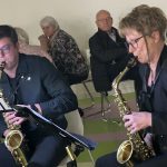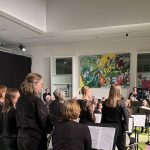Mit der traurig-schönen Komposition von Astor Piazolla Adios Nonino und der schwungvoll- turbulenten Tarantella von Alfred Reed verstanden es die Musiker, unterschiedliche emotionale Stimmungen zu vermitteln. Nach dem perfekten Schlusspunkt „Last Call“ von Otto M. Schwarz ließen sich die Musiker, angefeuert durch frenetischen Applaus, noch gerne zu einer Zugabe bitten. Mit „Pastime with good company“, einer Komposition von Heinrich VIII, führte die Jubiläumsreise wieder dahin zurück, wo sie begonnen hatte, ns Zeitalter des Barock.