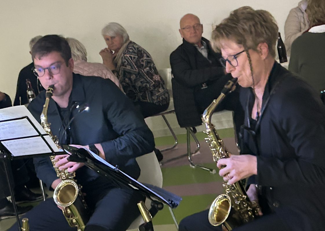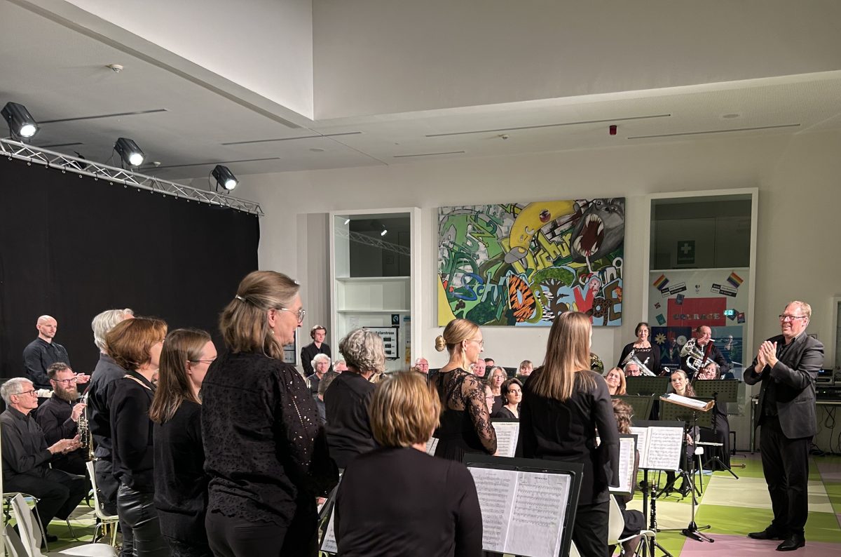 Mit der traurig-schönen Komposition von Astor Piazolla Adios Nonino und der schwungvoll- turbulenten Tarantella von Alfred Reed verstanden es die Musiker, unterschiedliche emotionale Stimmungen zu vermitteln. Nach dem perfekten Schlusspunkt „Last Call“ von Otto M. Schwarz ließen sich die Musiker, angefeuert durch frenetischen Applaus, noch gerne zu einer Zugabe bitten. Mit „Pastime with good company“, einer Komposition von Heinrich VIII, führte die Jubiläumsreise wieder dahin zurück, wo sie begonnen hatte, ns Zeitalter des Barock.