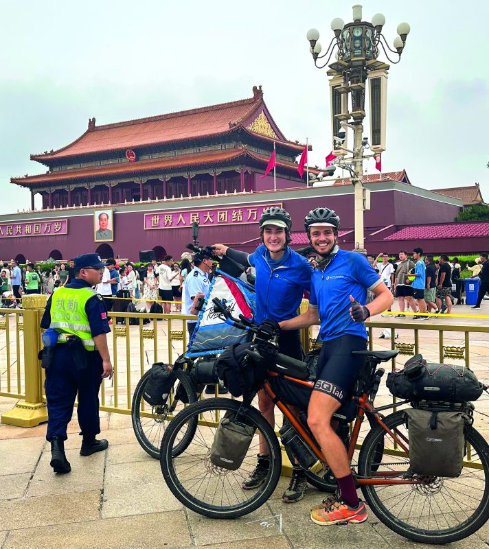 Bereits in jungen Jahren, so berichtet Tommaso, habe er nach China reisen wollen. In Verbindung mit seiner ambitionierten Leidenschaft für Zweiräder ebenfalls von Kindesbeinen an und einem caritativen Projekt, das ihm und seiner Familie aus persönlichen Gründen sehr am Herzen liegt (im Alter von nur 13 Jahren verstarb der Bruder seiner Mutter an Leukämie) blieb es nicht beim Traum, sondern wurde im Frühjahr 2025 real, mit dem richtigen Partner an seiner Seite und nach intensiven technischen Tüfteleien und organisatorischen Vorbereitungen. Dazu gehörten auch genaue Überlegungen, was unverzichtbar ist an Gepäck auf einer derartigen Tour – angefangen von drei Unterhosen bis zur kompakten „Fahrrad-Reparaturwerkstatt“, die es glücklicherweise so gut wie nie gebraucht hat. Dank der qualitativ hochwertigen, robusten Materialien sowohl bei Tommasos Tallbike-Unikat, das aus zwei aufeinander aufgebauten Rahmen besteht, als auch bei Jakobs Mountain Bike, blieb es bei lediglich zwei Reifenpannen, der ersten bereits 20km nach dem Start, den letzten im Kaukasus in Georgien.
