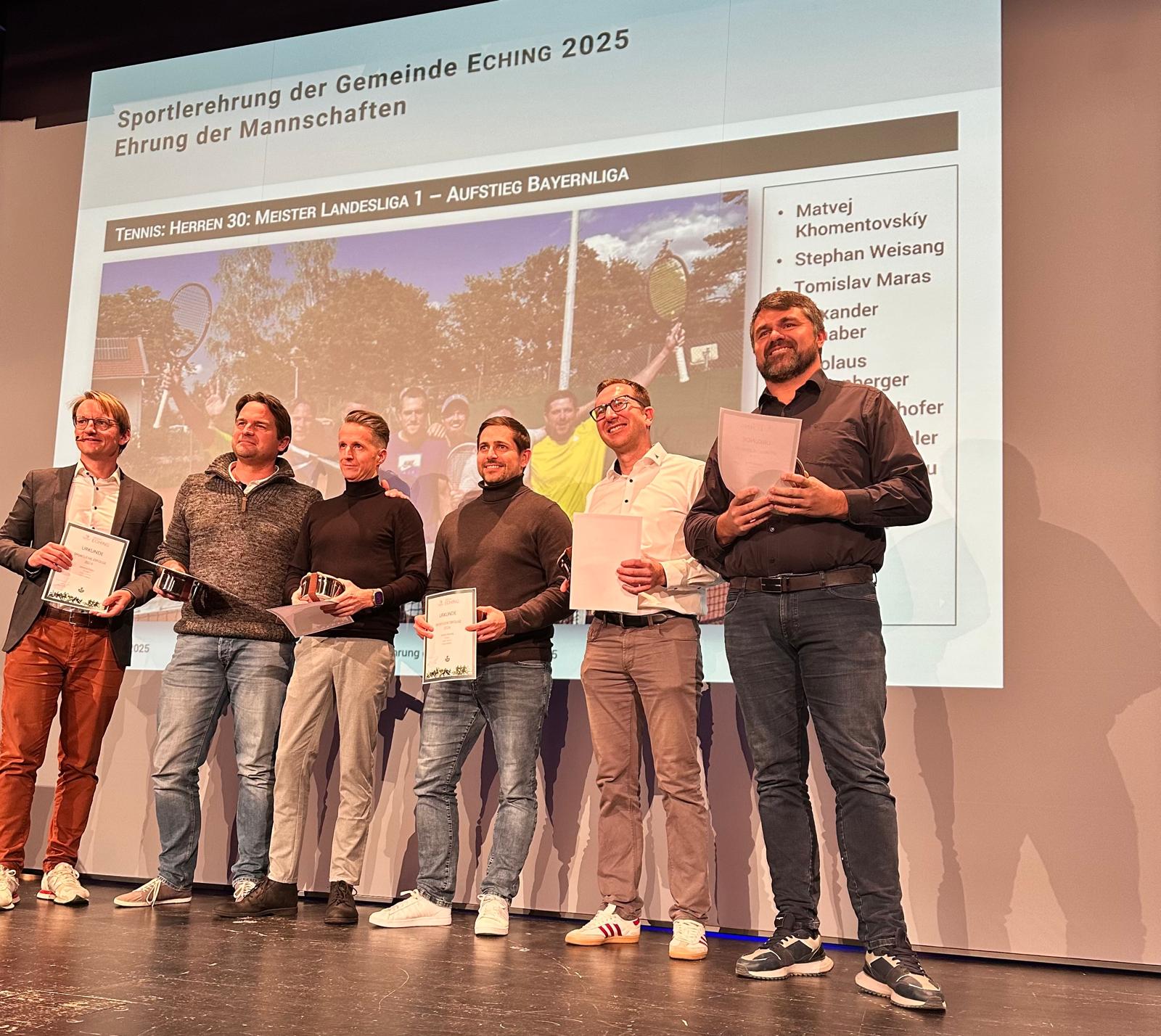 Im Rahmen der diesjährigen Sportlerehrung der Gemeinde Eching wurde die Tennisabteilung des SC Eching gleich mehrfach für herausragende sportliche Leistungen ausgezeichnet. Die feierliche Ehrung fand am 27. November 2025 im Bürgerhaus Eching statt und wurde von Bürgermeister Sebastian Thaler persönlich vorgenommen.