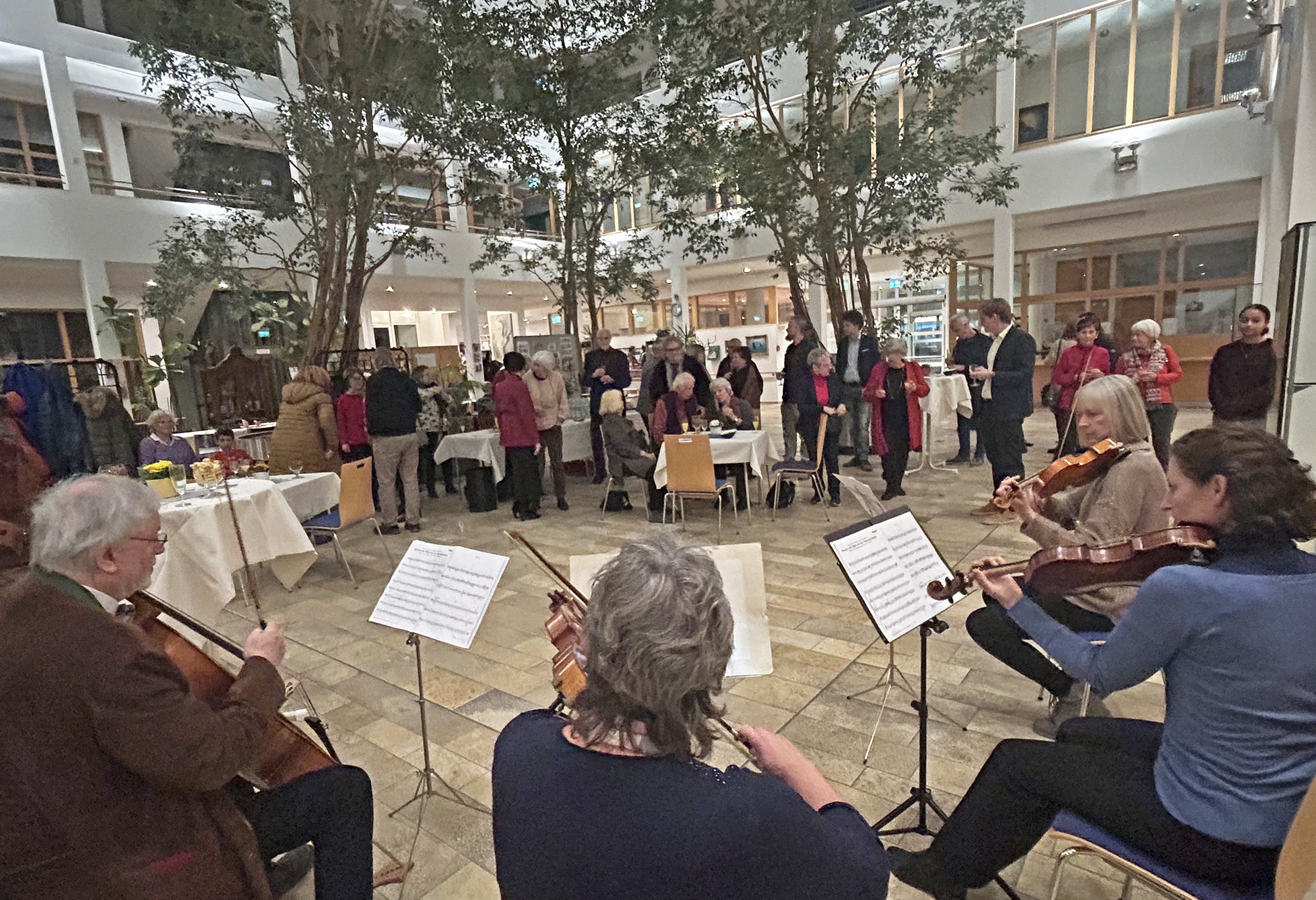 Und da neben Medizin und Malerei auch die Musik zu Rehbachs wichtigen Lebensinhalten zählt, hat er sein eigenes Streicherquartett „Gilamare“ mit Ulrike Gietl, Margit Griesbacher und Anna Mayer“ gleich mitgebracht. Gemeinsam „untermalen“ die vier Musiker mit Rehbach am Cello mit schönen Melodien traditioneller Volkstänze einen bunten Abend der besonderen Art.