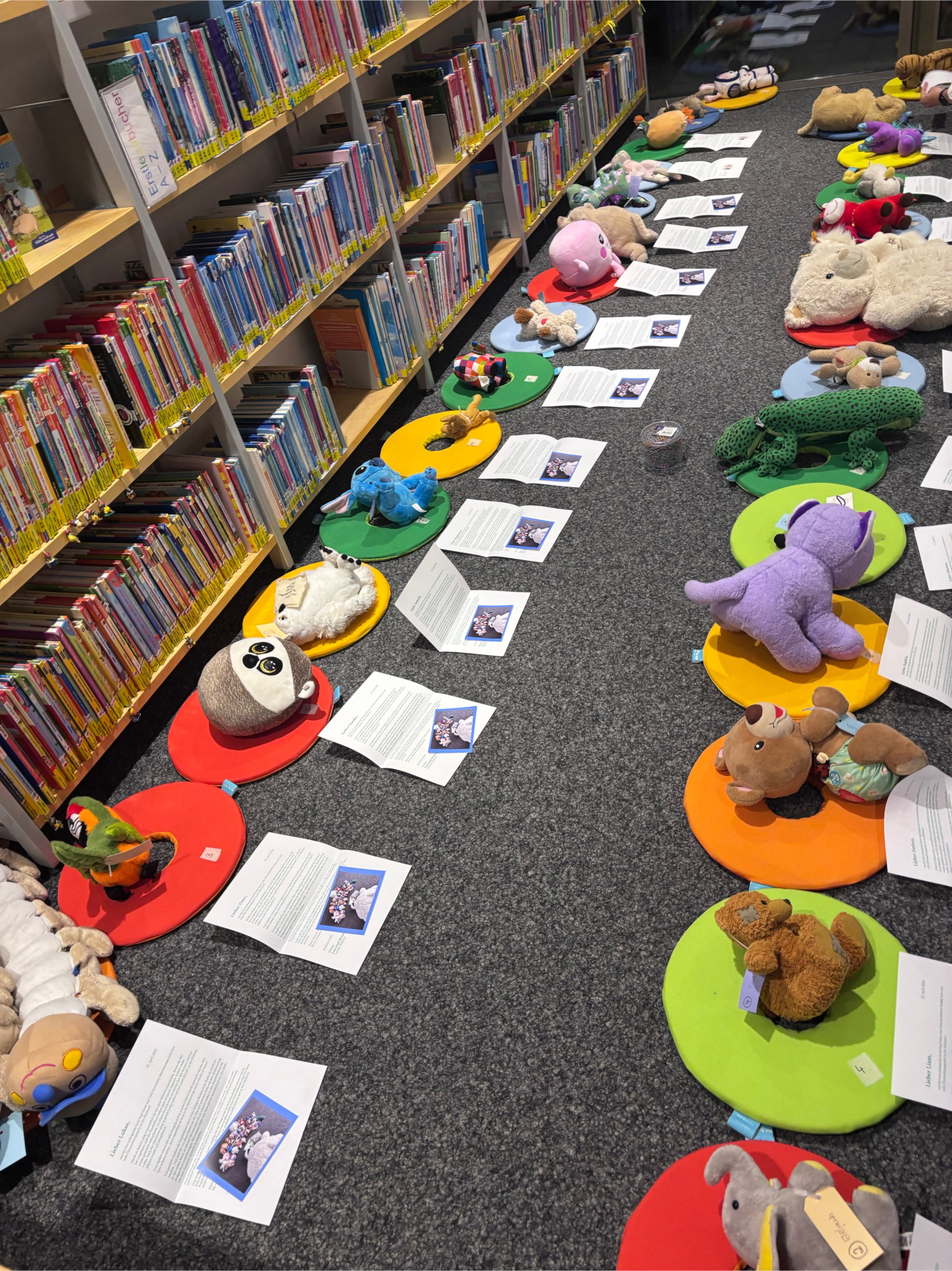 Kaum waren die Türen geschlossen, begann für die Stofftiere das Abenteuer: Sie spielten gemeinsam Spiele, fuhren Aufzug, naschten – ausnahmsweise – Popcorn und lauschten natürlich einer Vorlesegeschichte, denn das waren die Settings, die sich die Büchereimitarbeiterinnen im Vorfeld überlegt hatten. Die daraus entstandenen Fotos wurden dann zusammen mit einem liebevollen Brief ausgedruckt, damit jedes Kind am nächsten Tag erfahren kann, was die Kuscheltiere in der Nacht alles erlebt haben.
